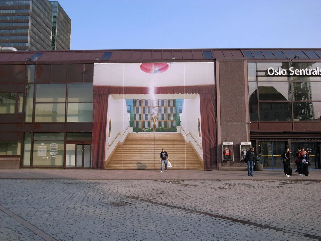 Artist Katja Høst har created a sculptural installation with photos from the old Opera-building in Oslo. for The exhibition is presented at Christian Frederiks plass on the south side of Oslo Central Station.